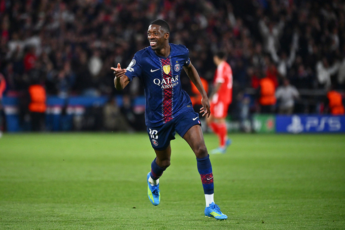 第58分钟,杜埃斜塞送出助攻,登贝莱内切后打近角弹柱后进网。大巴黎一度将比分扩大至5-2,28岁的金球先生此役完成2射1传。